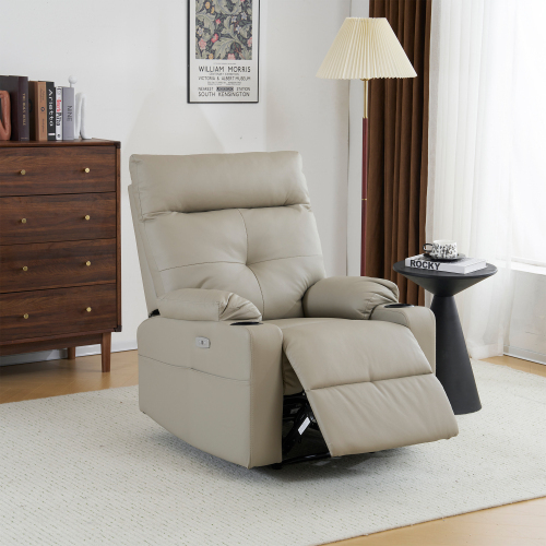 - リクライニングソファー 電動 リクライニングソファ 振動機能付き オットマン一体型 1人掛け USBポート付き 【ベージュグレー 】 KU838