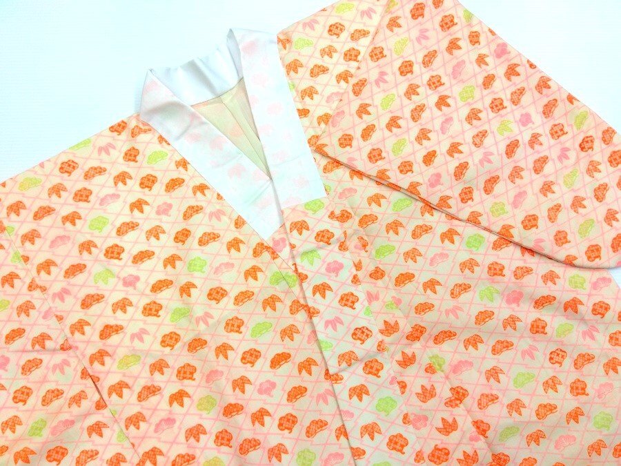 - アンティーク 長襦袢 仕立上り 着丈126cm モスリン クリーム地に松竹梅 レトロ 986 ggp