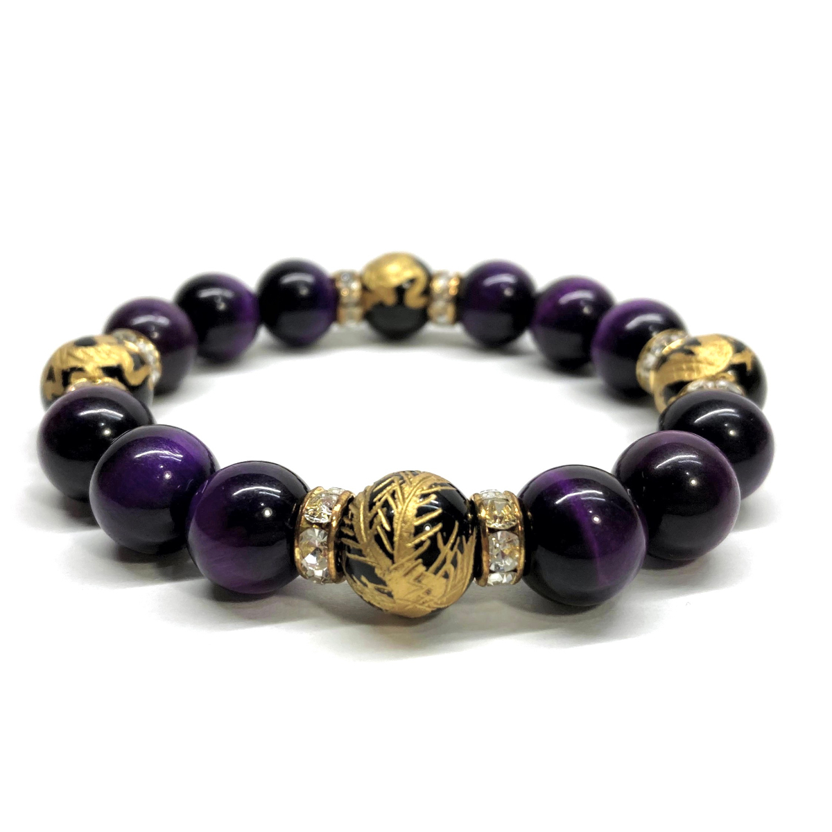 - 四神獣金彫オニキス×パープルタイガーアイ 12mm パワーストーン ブレスレット 天然石 青龍 白虎 玄武 朱雀 運気上昇 開運 金運 お守りG