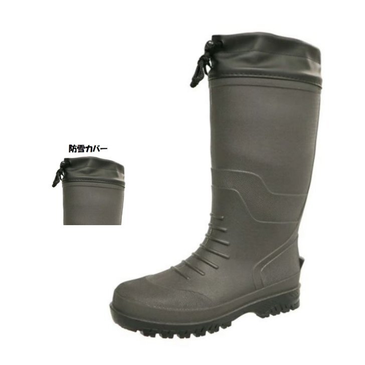 - 防雪 フード カバー スパッツ 付き 25.0 弘進ゴム ジクシーGS-07 グレー 紳士 メンズ 防寒 長靴 レイン シューズ ブーツ ゴム長 雪かき