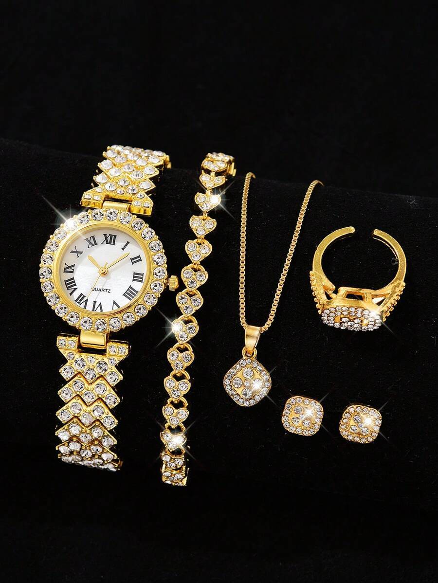 - 腕時計 レディース セット 女性用腕時計 6本セット 金色の時計 ラグジュアリーラインストーン飾り スチールストラップ 女性用ゴー