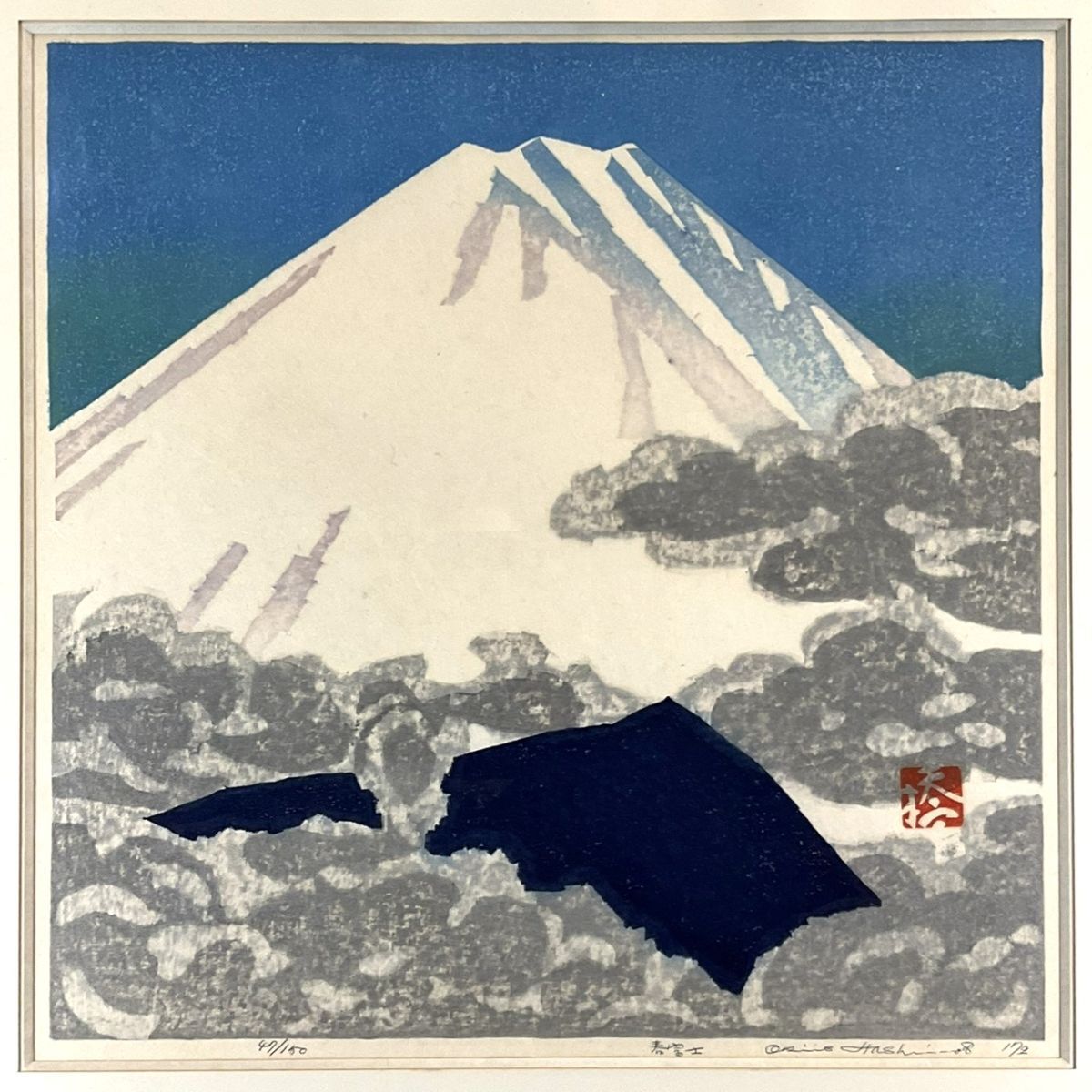 真作■木版画■橋本興家■『春富士』■1972年・希少■ORIGINAL WOODBLOCK PRINT■日本版画協会理事長■額付絵画■