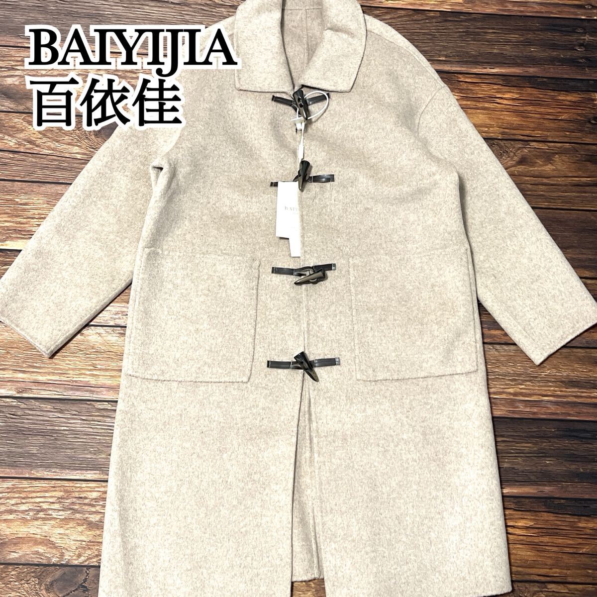> 新品 未使用 BAIYIJIA 百依佳 ダッフルコート コート 秋冬 ウール レディース アウター ロング丈 ポケット付 海外製 レア ピンクベージュ L