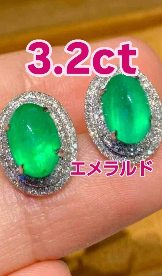 > プチ豪華ミニジェリーシリーズ 新品3.2ct 蛍光性エメラルド ピアス 唯一無二の輝き「光を纏う緑―― 3.2カラットが放つ、唯一無二の蛍光。