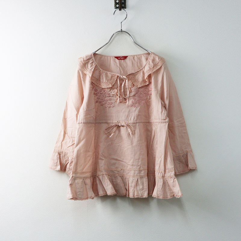 - ピンクハウス PINK HOUSE ぶどう刺繍 綿ローンレースブラウス\ピンク リボン ピコ プルオーバー シャツ【2400014634846】