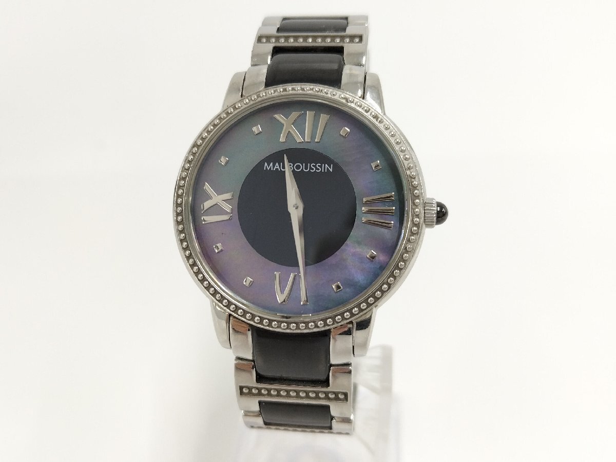 > ●MAUBOUSSIN モーブッサン ジャルダンドゥパレロワイヤル レディース腕時計 クォーツ ブラックシェル文字盤 9296100-700 中古[ne]J06ma65