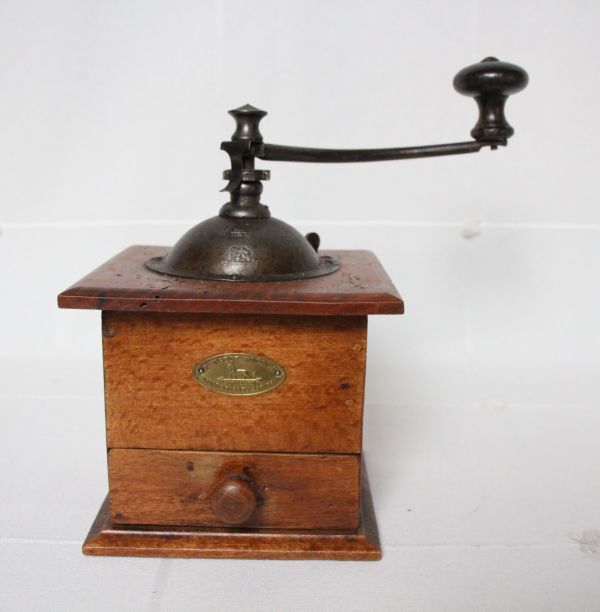 - フランス アンティーク PEUGEOT 古い木製のコーヒーミル 1930年代 実働 美品