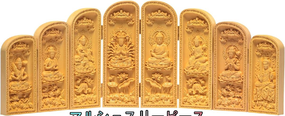 - 八開仏 阿弥陀如来 千手観音 文殊菩薩 普賢菩薩 大日如来 虚空蔵菩薩 勢至菩薩 不動明王 仏像 木彫り 柘植の木 十二干支お守り本尊