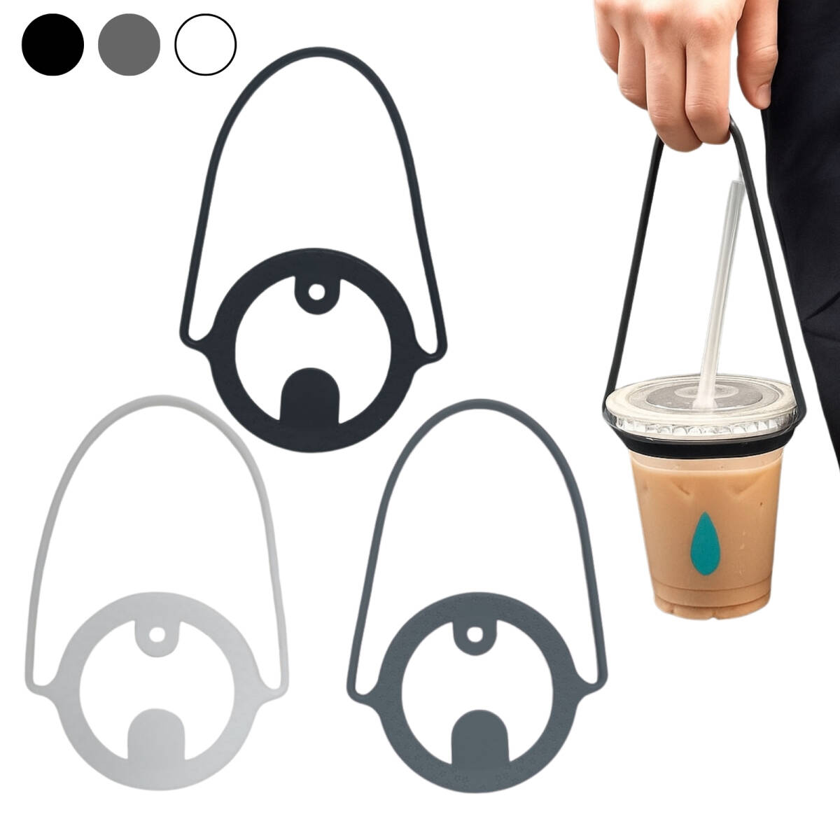 - 【3色セット】シリコンカップホルダー ストラップ付き ドリンクスリング 持ち運び便利 折りたたみ可 携帯用 ブラック グレー ホワイト
