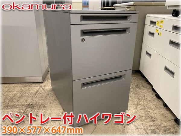 > オカムラ 3段デスクワゴン プロユニット DNC1CX-Z637 390x580x650mm A4×2段+ペントレー シリンダーオールロック錠 オフィススチール家具