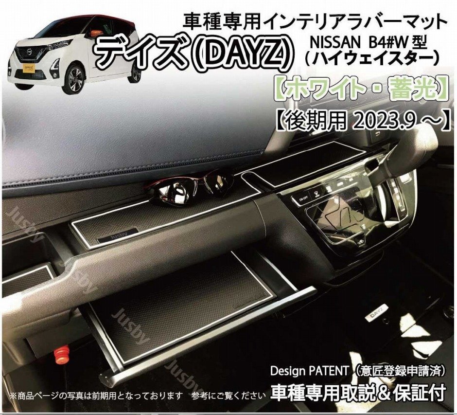 - (後期)日産 デイズ(DAYZ/ハイウェイスター) インテリアラバーマット (ホワイト/蓄光)ドアポケットマット フロア パーツアクセサリー