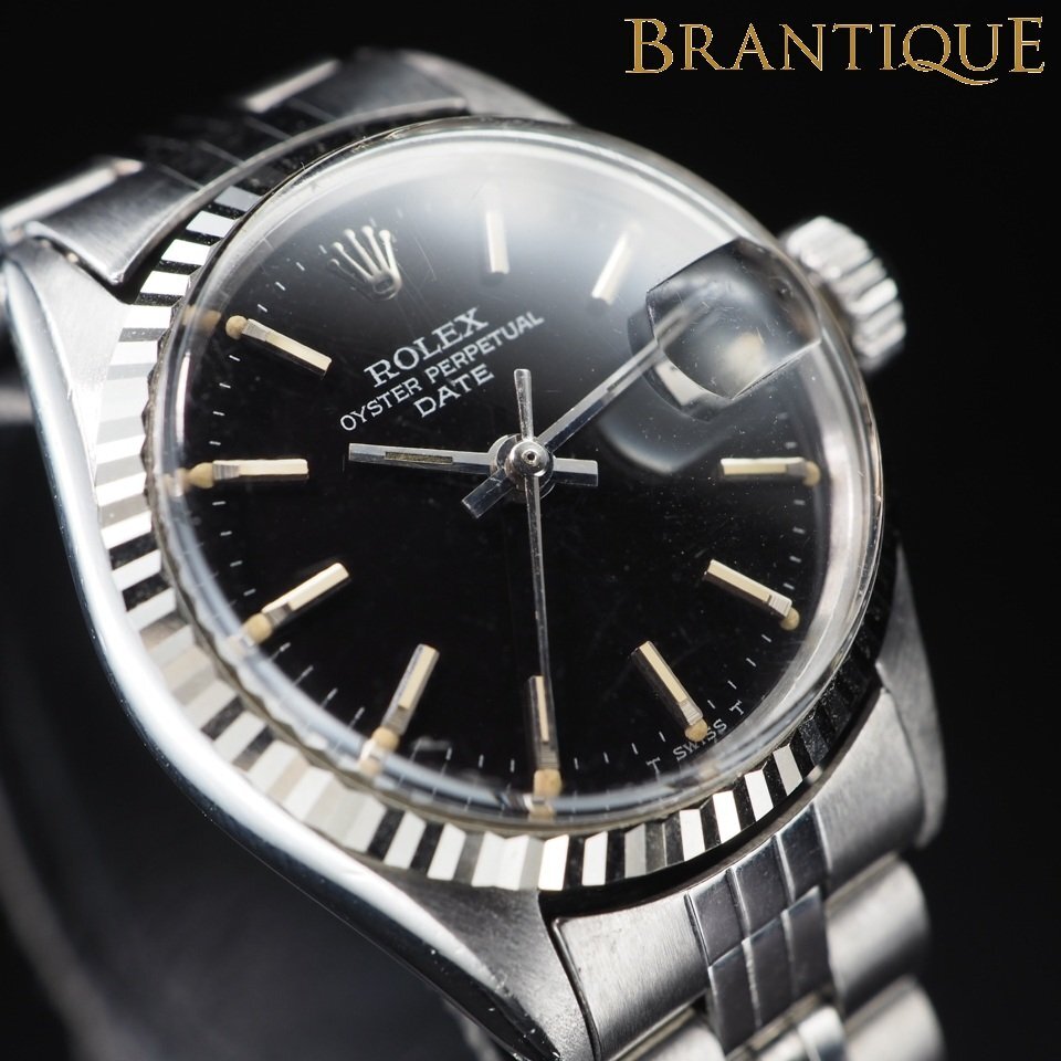 - ◆美品◆ ROLEX ロレックス オイスターパーペチュアル WG/SS 6517 自動巻き ブラックミラーダイヤル 保 内箱 レディース 腕時計 「27659」