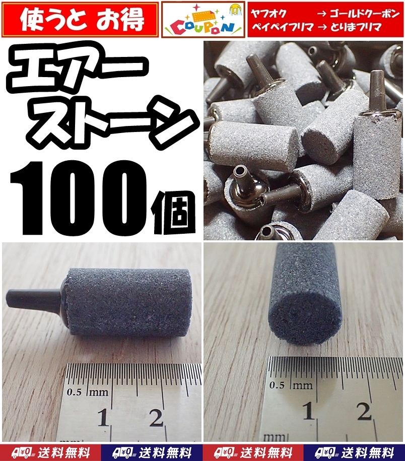 - 【送料込】エアーストーン 100個 円柱 グレー エアストーン シュリンプ・メダカ水槽のエアー供給用に 内径4mmのチューブで接続可
