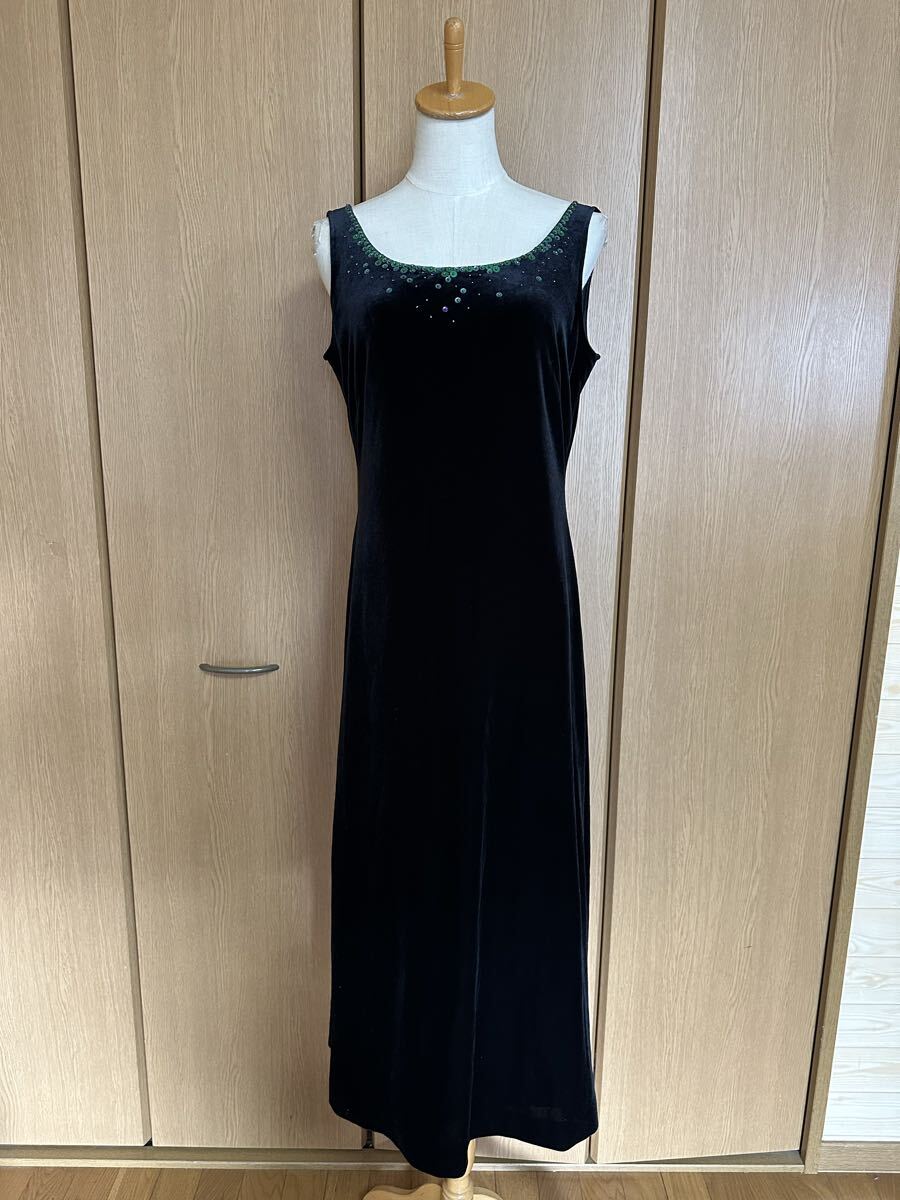 - ◇スパンコールビーズ刺繍 ベルベットベロア ロング ワンピース 13ARサイズ 黒◇フォーマル結婚式パーティー