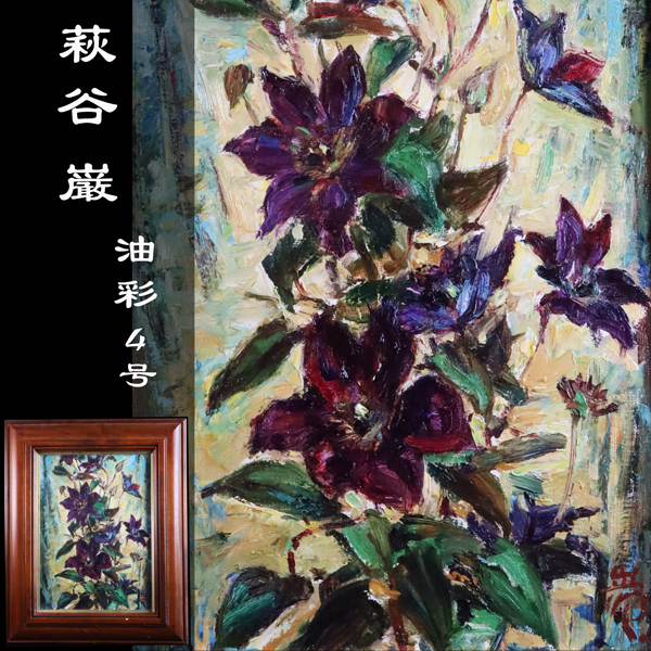 > ◇雅◇ 真作保証 萩谷巌 サロン・ドートンヌ会員 油彩 4号 裏シール 師:黒田清輝 物故巨匠 額装 /RYO.25.10 [B45] SN