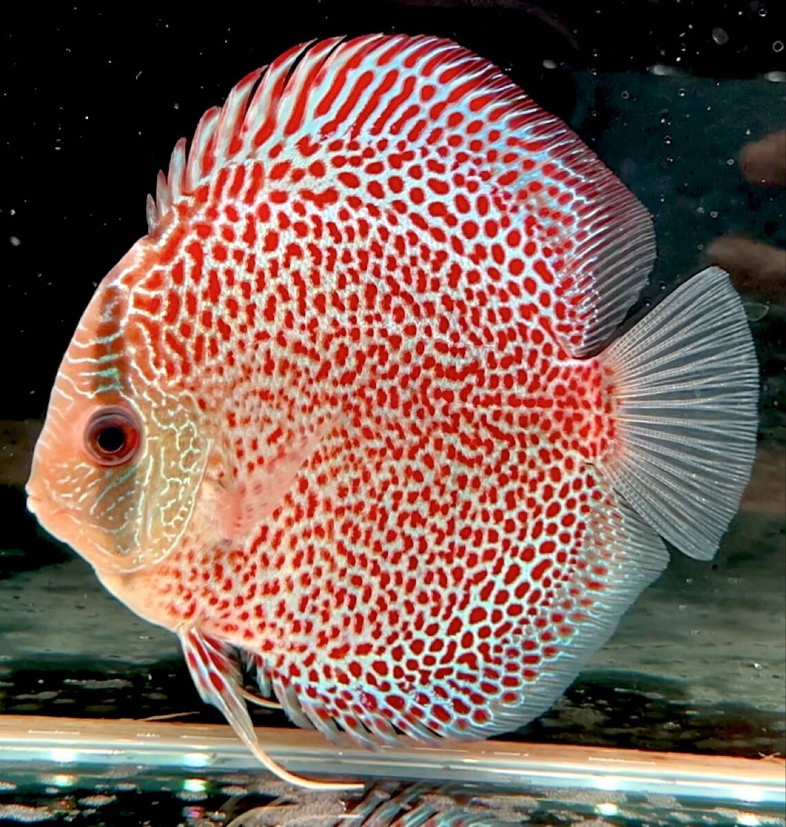 - 【無限華選別上位】レッドレオパードスポット ディスカス 約12cm|発色鮮明・丸みのある体型・日本水順応済