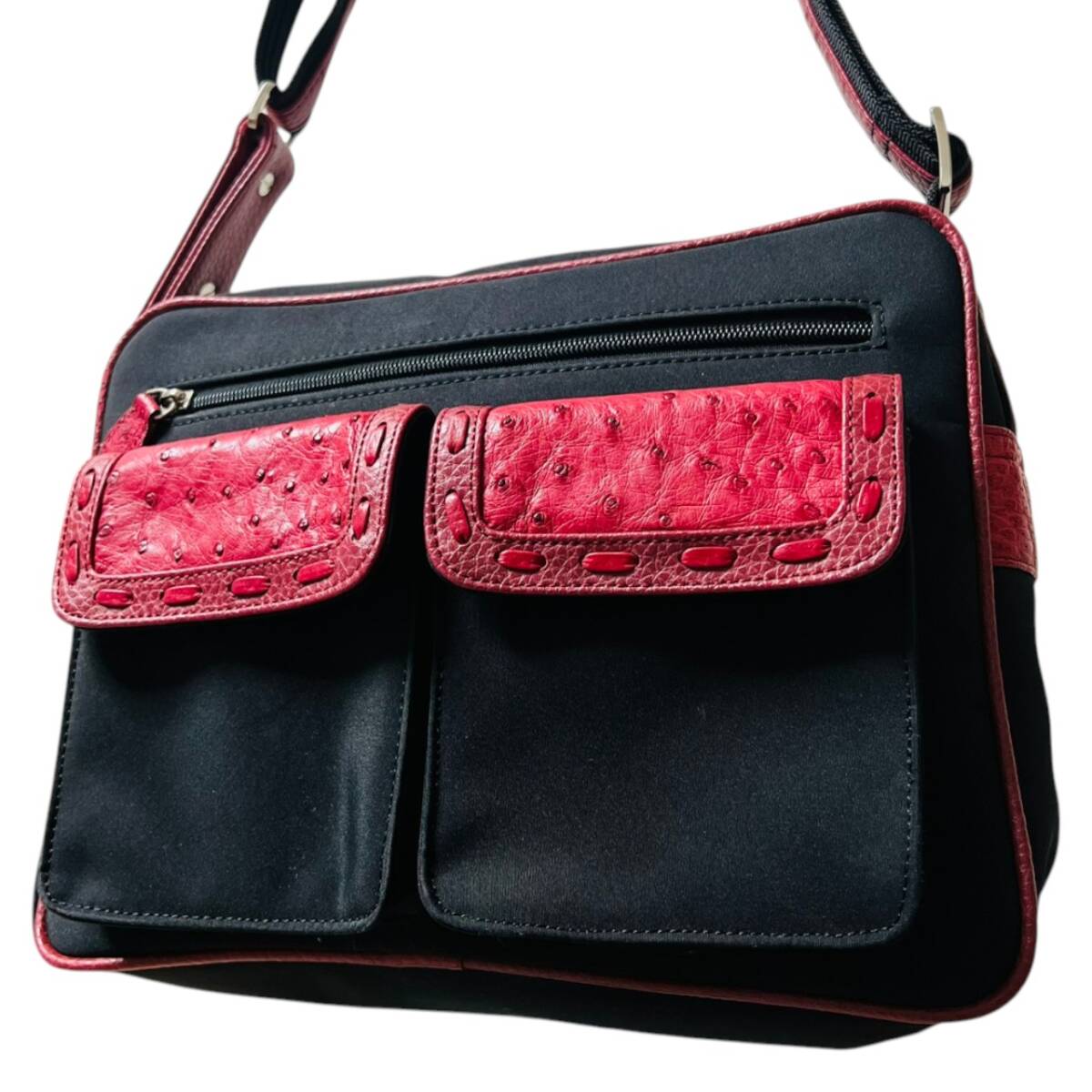 - 【極美品】ショルダーバッグ オーストリッチ ナイロン 黒×赤 多機能 斜めかけ