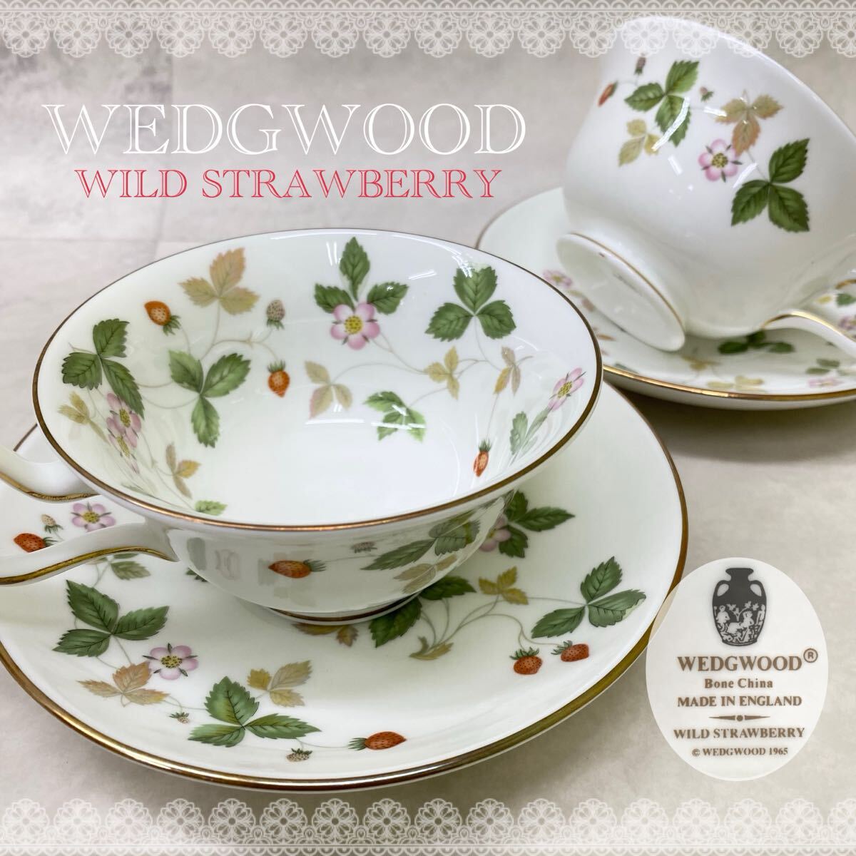 - SU■未使用■ WEDGWOOD ウェッジウッド カップ&ソーサー 2客 セット WILD STRAWBERRY ワイルドストロベリー いちご柄 金彩 陶器製 洋食器