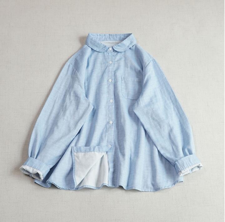 - 新入荷チュニック トップス 上着 ダブルガーゼ ストライプ柄 綿100% 大人可愛 シャツ オシャレ フリーサイズ ブラウス