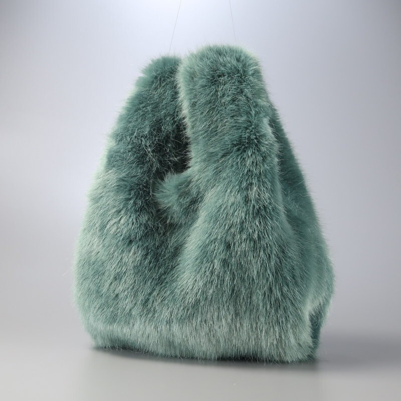- MI1979■FRAY I.D フレイアイディー ファートート ファーバッグ エコファー フェイクファー 手提げ 鞄 グリーン系 FWGB175319