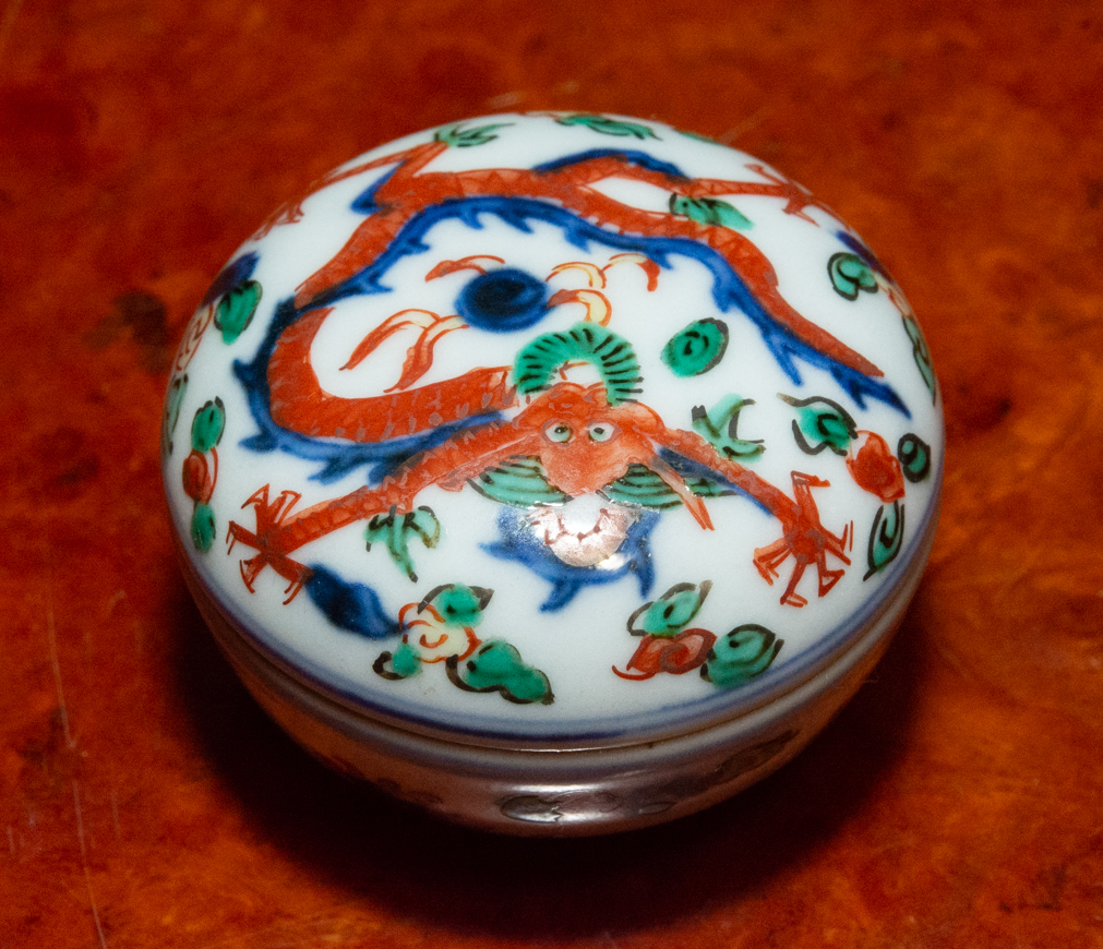 - 五彩 龍 香合 唐物 中国美術 煎茶道具 香道具