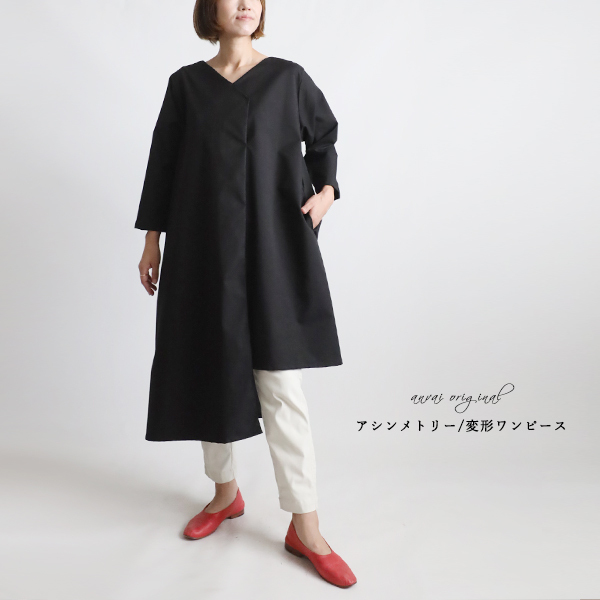 - 新作 上品ブラック フォーマル 伸縮ストレッチ アシンメトリー 変形 ロング ワンピース ゆったり 黒 F99
