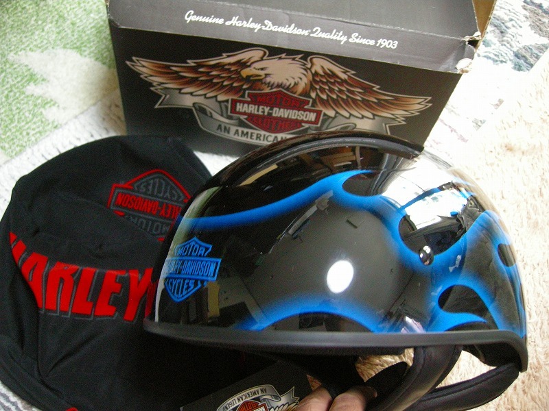 - ハーレー純正 ヘルメット XXL 黒艶 青炎フレアー フレームス 光沢ブラック ロープロファイル