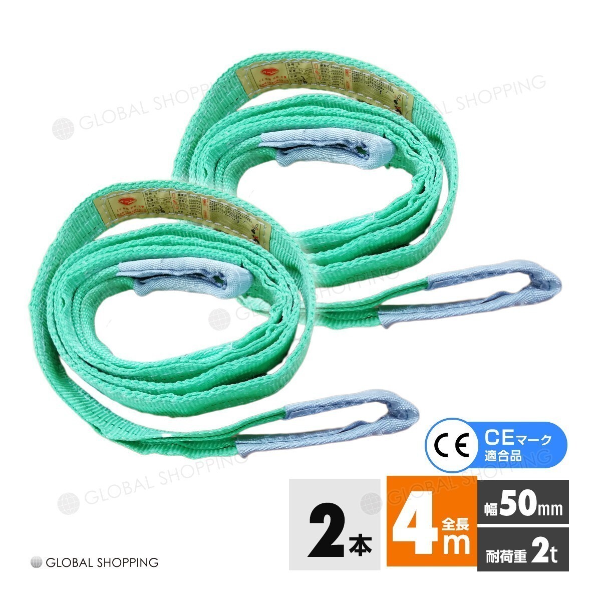 > スリングベルト 4m 50mm 2000kg 吊りベルト ナイロンベルト 繊維ベルト 荷吊り 吊上げ ロープ 牽引 クレーンロープ クレーンベルト 2本