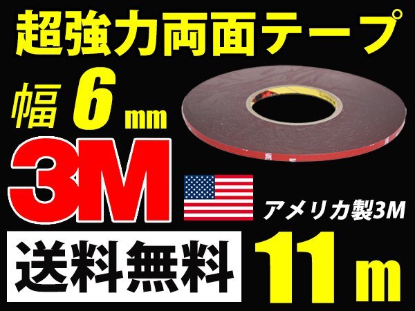 - 3M 超強力 両面テープ/11m巻き/幅6mm/厚さ0.8mm 車外 車内 外装 送料無料 3m-6mm-11m