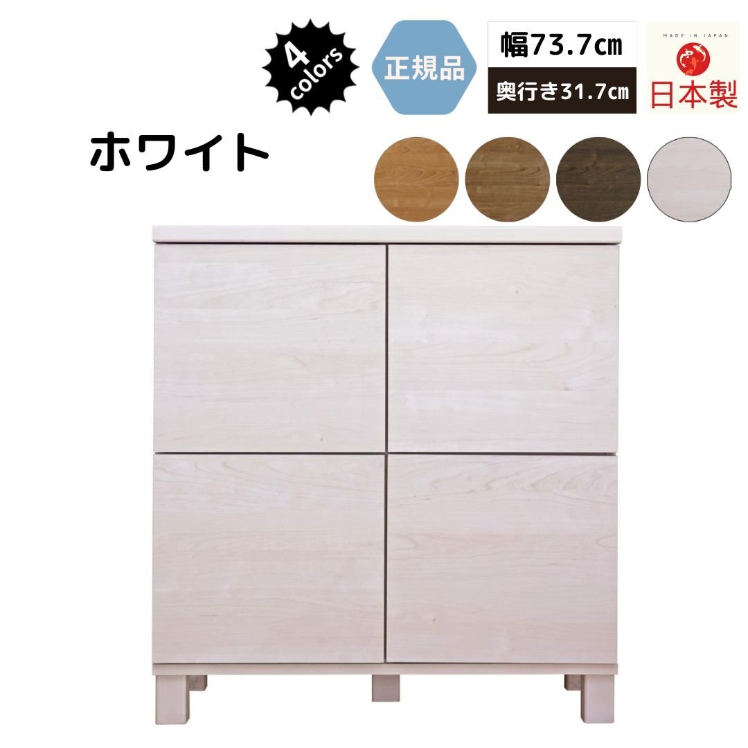 - キャビネット サイドボード 木製 2列 薄型 木目 奥行32cm 高さ78.7cm 扉付き 扉 おしゃれ 収納 棚 日本製 NC-8075CB-WH ホワイト