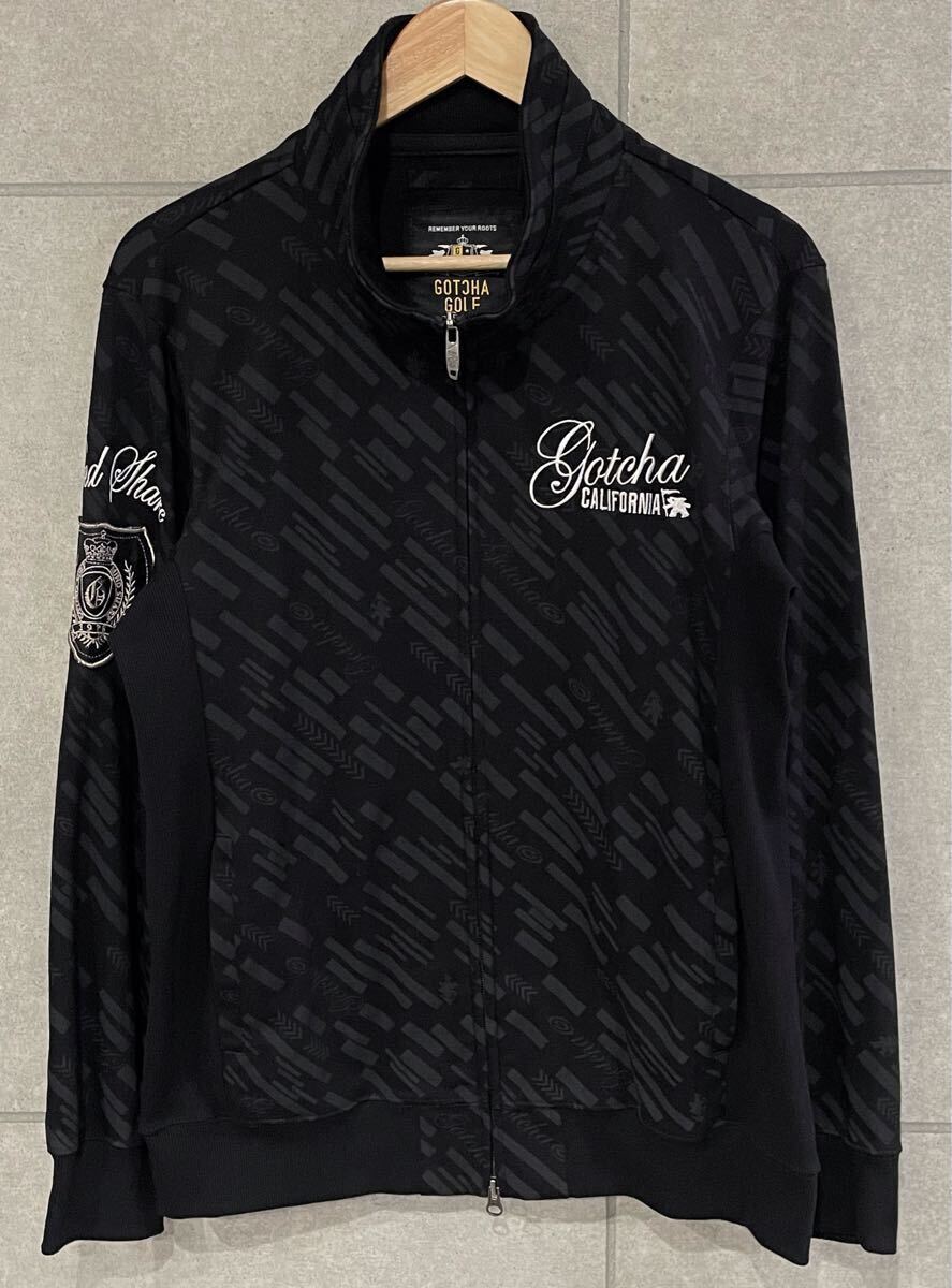- 希少デザイン! GOTCHA GOLF ガッチャゴルフ ジップアップ トラックジャケット 豪華刺繍 総柄 ブラック Lサイズ メンズ 送料込 新規×