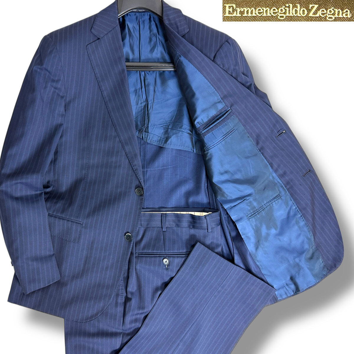 - J3043 美品 エルメネジルドゼニア ストライプスーツ ネイビー 52 Ermenegildo Zegna