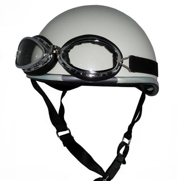 > 新品 ZK-120 ダックテール(パールホワイト)メッキモール 装飾ゴーグル付き SG公認 125ccまで サイズ調整スポンジ付き S~L調整可
