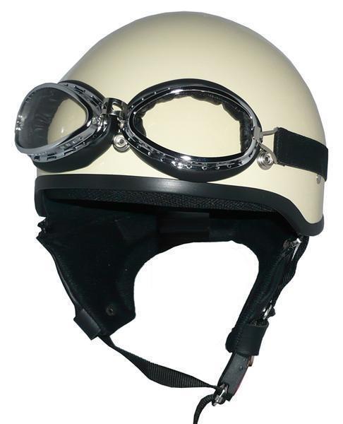> ZK-600 装飾ゴーグル付きハーフジェット(アイボリー) SG公認 耳あて脱着可能! ポリスヘルメット ポリヘル