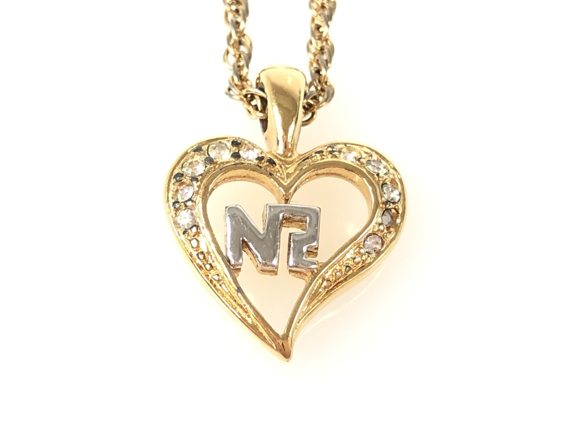 > 美品 ニナリッチ NINA RICCI ハート ロゴ ラインストーン ネックレス ゴールドカラー×シルバーカラー YAS-1575