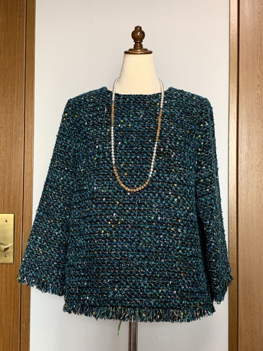 - 【美品】DAMA collection ダーマコレクション ツイード長袖 トップス 裏付 秋冬 サイズ13号 グリーン系