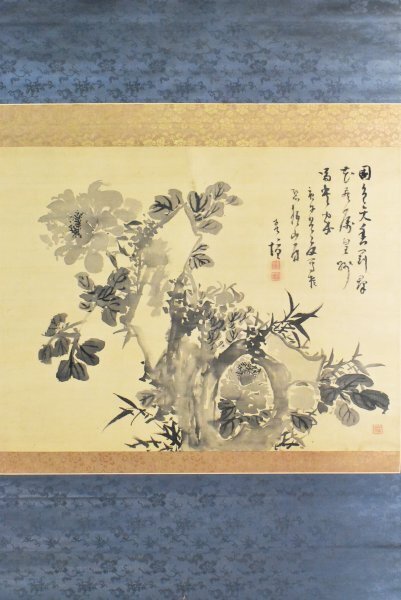 - K5998 真作 重春塘「花弁図」絹本 肉筆 河北春谷師事 中国 日本画 書画 骨董 茶掛 掛け軸 掛軸 古美術