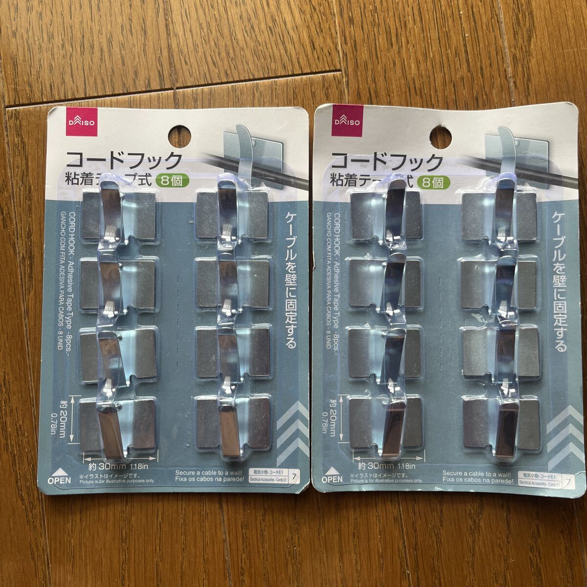 - ダイソー コードフック 粘着テープ式8個2