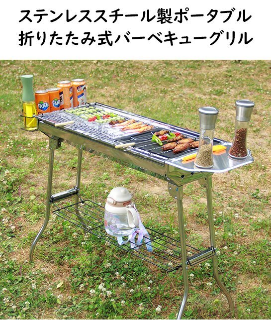 - 大型バーベキュー コンロ 折りたたみ ステンレス 大型 BBQコンロ グリル 収納 キャンプ アウトドア 焼肉 軽量 大人数 5~10人以上用 679