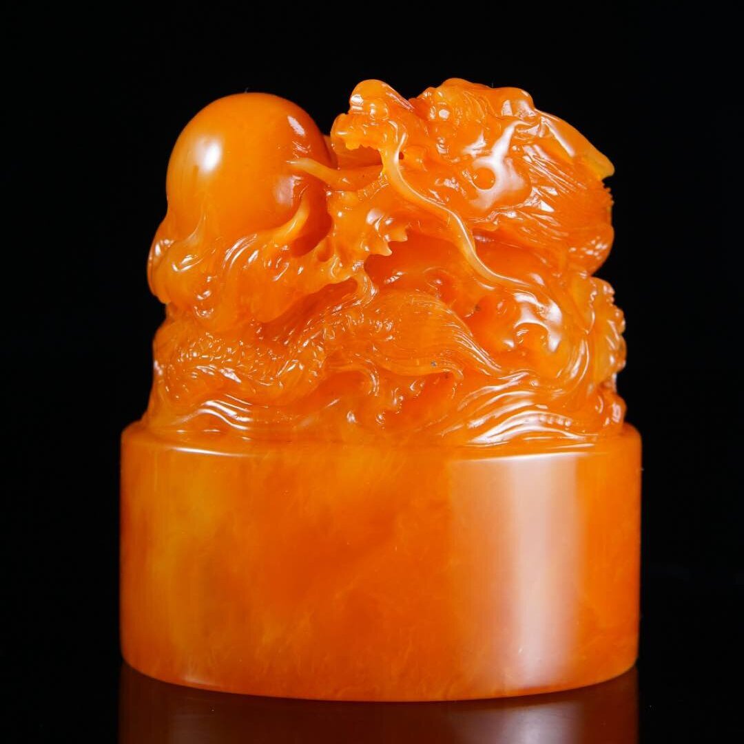 - ▽鴻▽金石篆刻 寿山石 田黄石彫 龍騰盛世鈕素章 印材 箱付 時代物 中国古美術 骨董品
