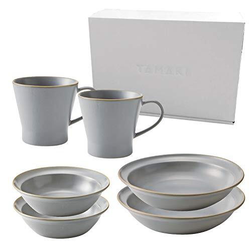 - TAMAKI ペア食器セット エッジライン グレー 6点セット 電子レンジ・食洗機対応 箱入 2人用 ふたり暮らし T-