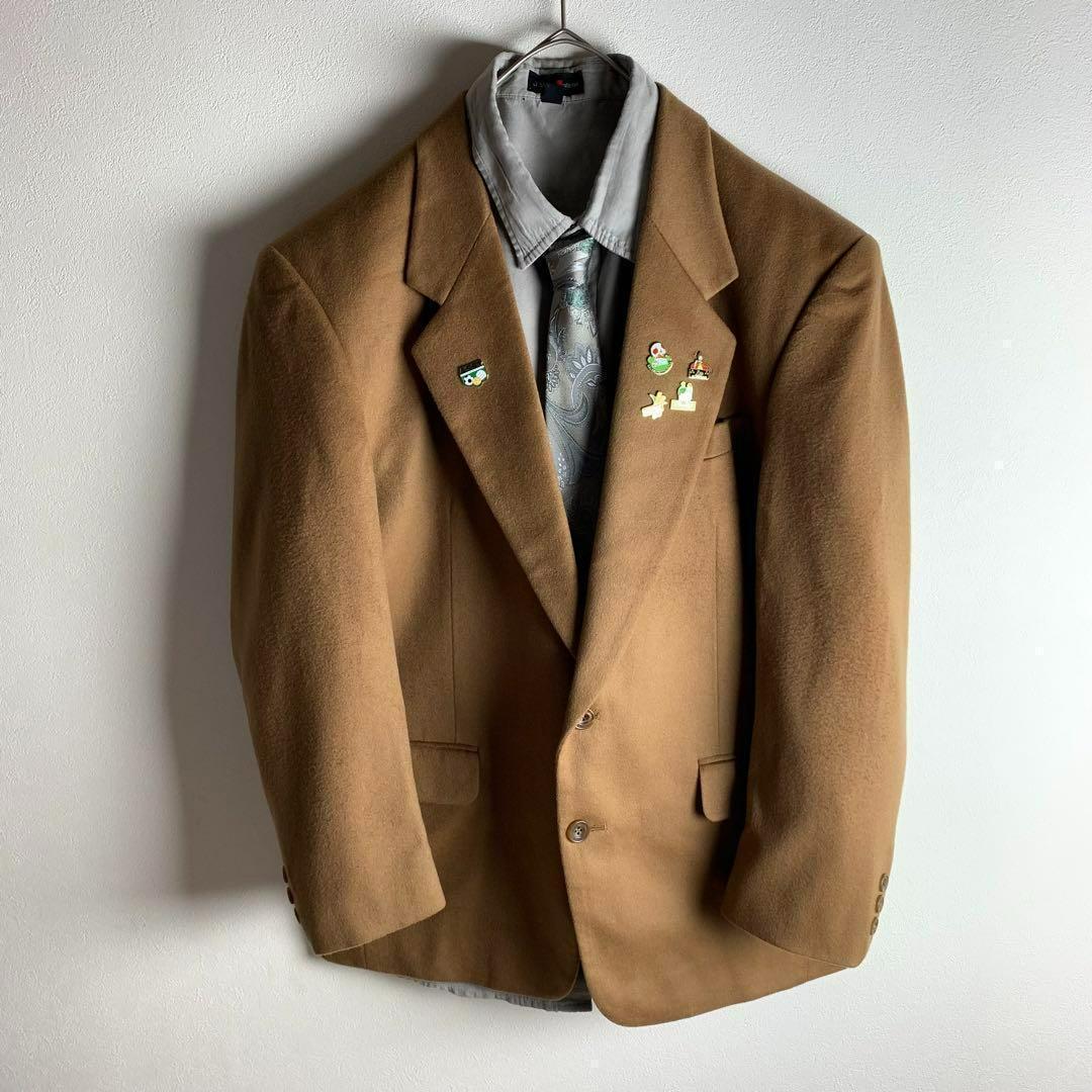 - コーデ売り テーラードジャケット カシミヤ100% キャメル色 ピンズ 長袖シャツ スエードライク ネクタイ 総柄 お洒落 メンズ 古着