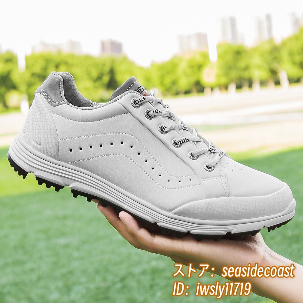 - 絶賛★ゴルフシューズ メンズ 新品 スポーツシューズ 幅広 運動靴 強いグリップ 紳士スニーカー フィット感 防滑耐磨 撥水 ホワイト 27.5cm