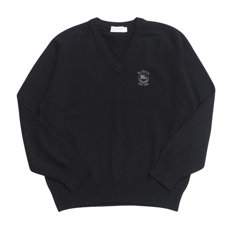 - TI7382▼Burberrys/バーバリー*ヴィンテージ*ラムウール Vネック ニット セーター ロゴ刺繍 Large ブラック