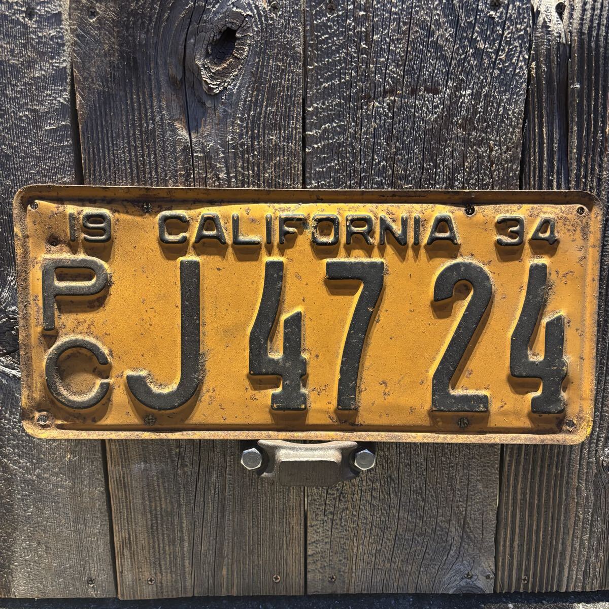 > アメリカ4724ヴィンテージナンバープレートライセンスプレートカリフォルニア州 1934年)錆プレートアメリカ雑貨ガレージアメ車シボレー