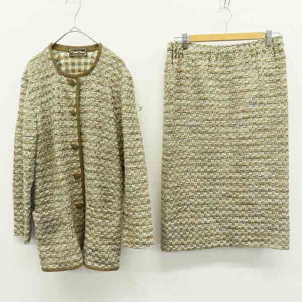 ◎商品名(タイトル):サイトウトヨコ 斉藤都世子 セットアップ スカートスーツ ニット [x972875]◎ブランド名:サイトウトヨコ (斉藤都世子)◎アイテム名:セットアップ スカートスーツ◎サイズ:-◎性別:レディース◎カラー:マルチ◎素材:表記なし◎実寸サイズ:(トップス)肩幅約 39cm・袖丈約 59cm・着丈約 67cm・胸囲約 51.5cm×2 (スカート)ウェスト約 36cm×2・ヒップ:約 47cm・スカート丈約 67cm◎商品コメント:★当店の商品はすべてリユースアイテムとなります。特質上、些細なダメージは記載しておりませんので着用に問題のない使用感、着古した雰囲気などはご了承くださいませ。◎コンディションレベル:やや傷や汚れあり◎コンディション備考:各所に糸出がございます(画像5参照)キーワード/アクイール/古着/used/ビンテージ/ヴィンテージ/レトロ/昭和/ニットジャケット/ニットスカート/ノーカラー/ジャケット/ノーカラージャケット/ロング/スカート/ロングスカート/デザインボタン