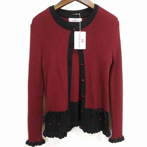 - #a ギャラリービスコンティ GALLERY VISCONTI アンサンブル 2 赤 黒 ニット カーディガン カットソー ラメ リボン 美品 [882871] k01