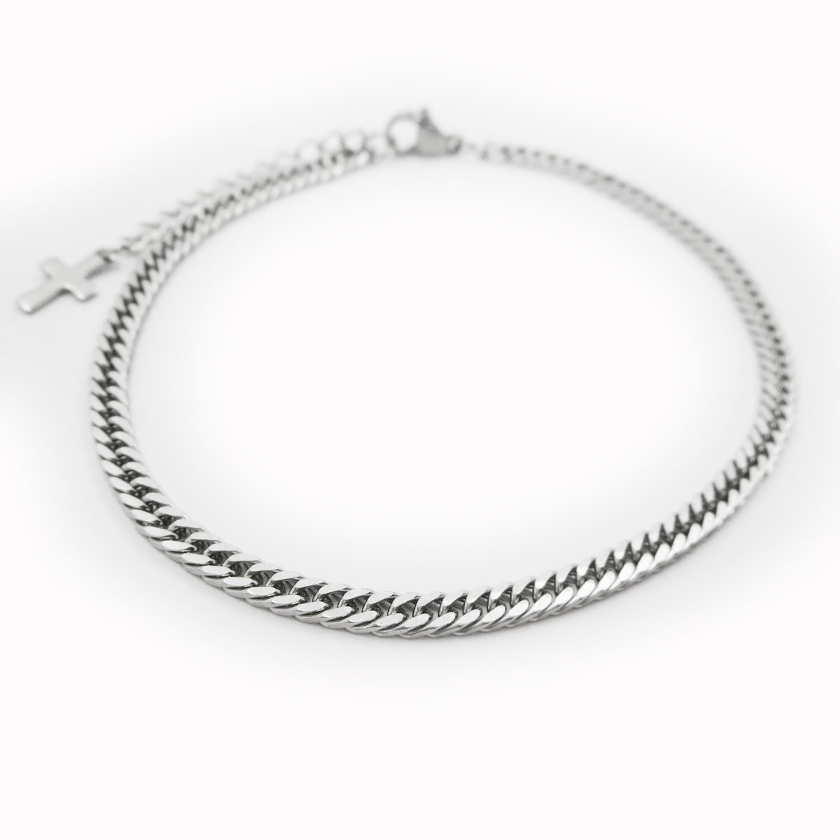 - 幅3.5mm 喜平4面カット ステンレスチェーン ブレスレット 約21cm(18+3cmアジャスター) SB101