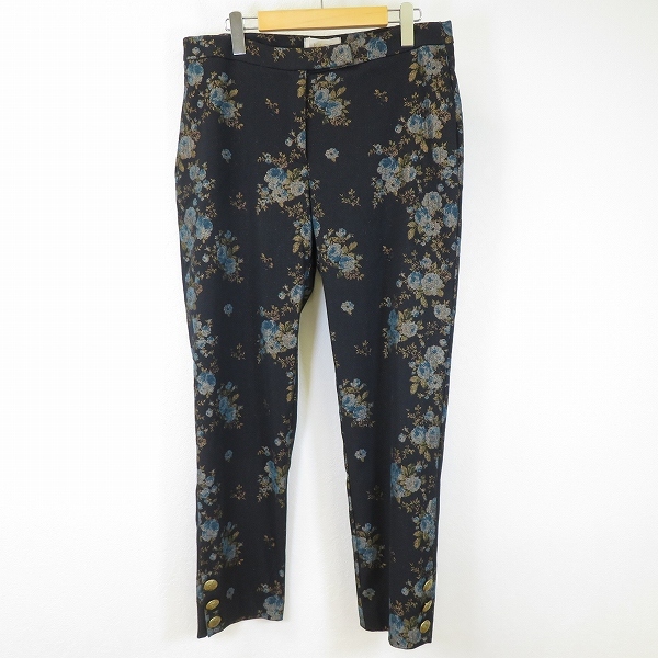> #a カオス KAOS パンツ 48 黒系 青系 緑 ゴールド 花柄 バラ柄 ラメ 金釦 タグ付き 美品 イタリア製 レディース [957188] k01