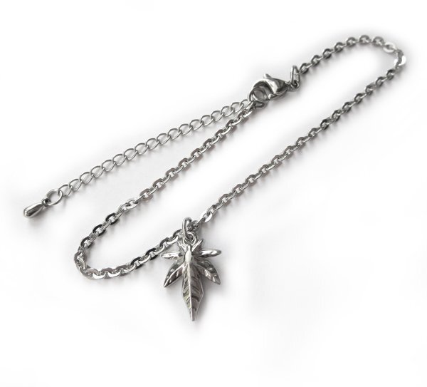 - 【大きめ】ステンレスチェーン マリファナ アンクレット 29cm(25+4cmアジャスター) 2.4mm幅平小豆